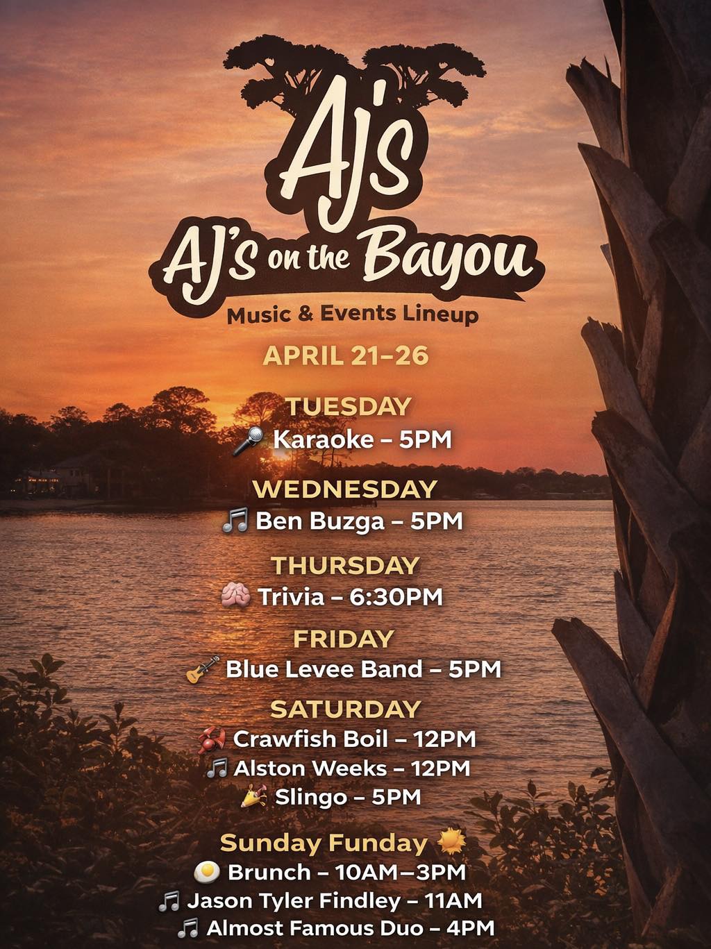 at AJ's on the Bayou